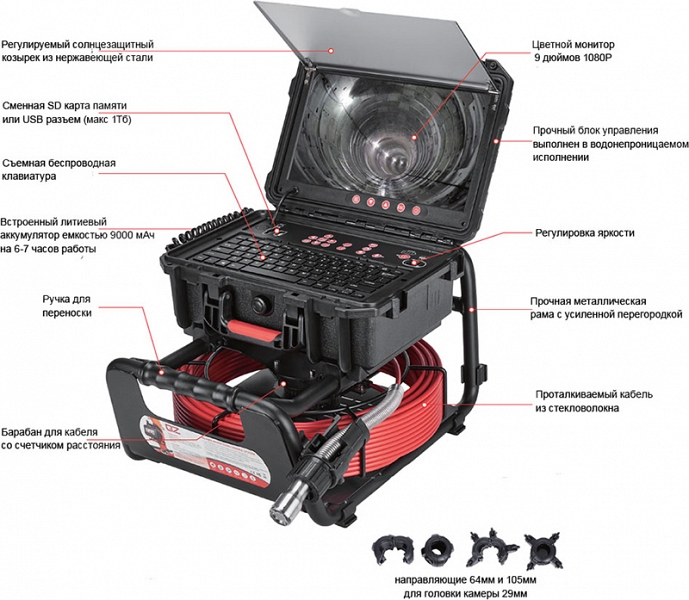 – Головка камеры Ø 29 × 50 мм, 1080Р (1920 × 1080), 12 × LED